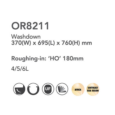 Orin's water closets are relatively water efficient., Further advancements in sanitary ware built withproven scientific ideas and architectural engineering have resulted in Orin's Dyna Green Flushing System.