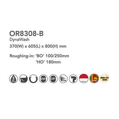 Orin's water closets are relatively water efficient., Further advancements in sanitary ware built withproven scientific ideas and architectural engineering have resulted in Orin's Dyna Green Flushing System.