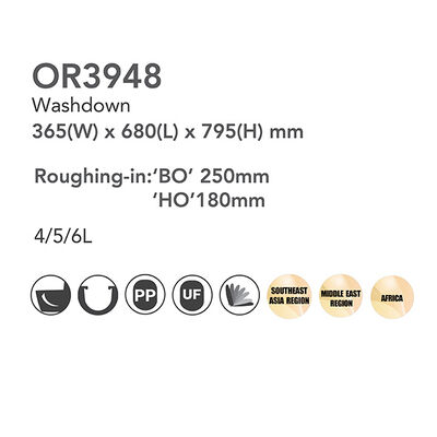 Washdown One Piece Toilets 365x680x795mm BO(S TRAP) Orin OR3948 For Bathroom