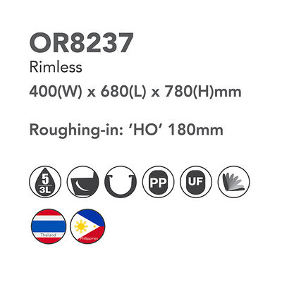 Rimless One Piece Toilets 400x680x780mm HO(P TRAP) Orin OR8237 For Bathroom