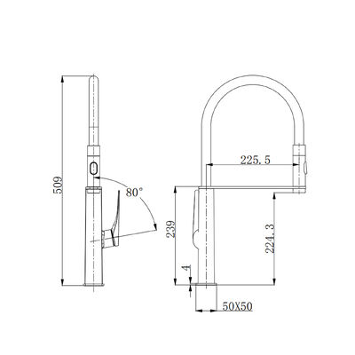 Hot Cold Kitchen mixer Faucet 509mm Matte black Orin OR1514411