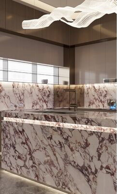 This Aura ZZTS24 sintered stone slab showcases a brilliant polished finish and natural through-body veining, restoring the delicate texture of natural stone. The extra-large 1600×3200mm format creates a continuous and luxurious visual effect, enhancing the sense of space and adding a high-end decorative touch to any interior.